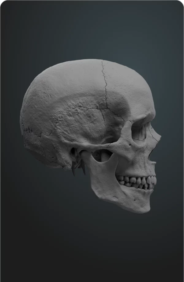 La verdad es simple: el cráneo es la base de todas las proporciones faciales. Sin entender la estructura ósea subyacente, cualquier rostro que crees – sin importar cuánto detalles – carecerá de autenticidad. Y la mayoría de referencias disponibles (libros, modelos digitales, fotos) no permiten el análisis tridimensional completo que necesitas.